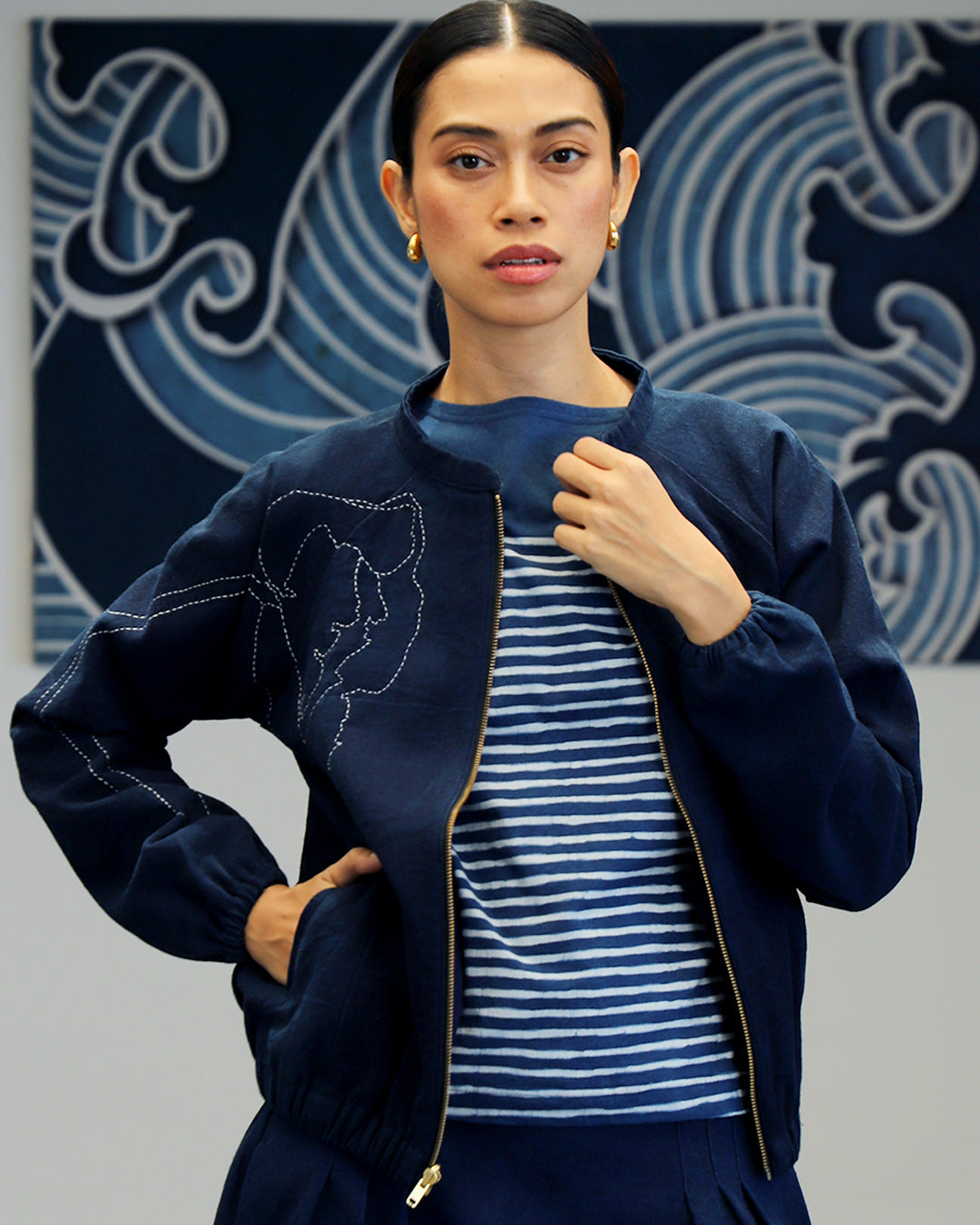 Our main language is deep, plant-based indigo dye on denim, carefully crafted by artisans, carrying the stories of the Indonesian archipelago in its rich hue.