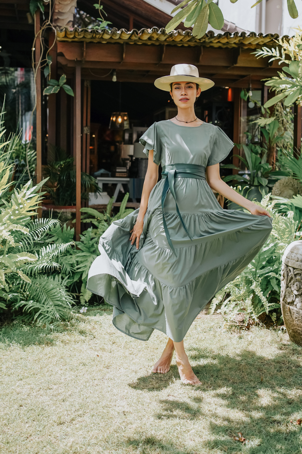 Dance away in our Alicudi Maxi Dress featuring delicate bell sleeves.
