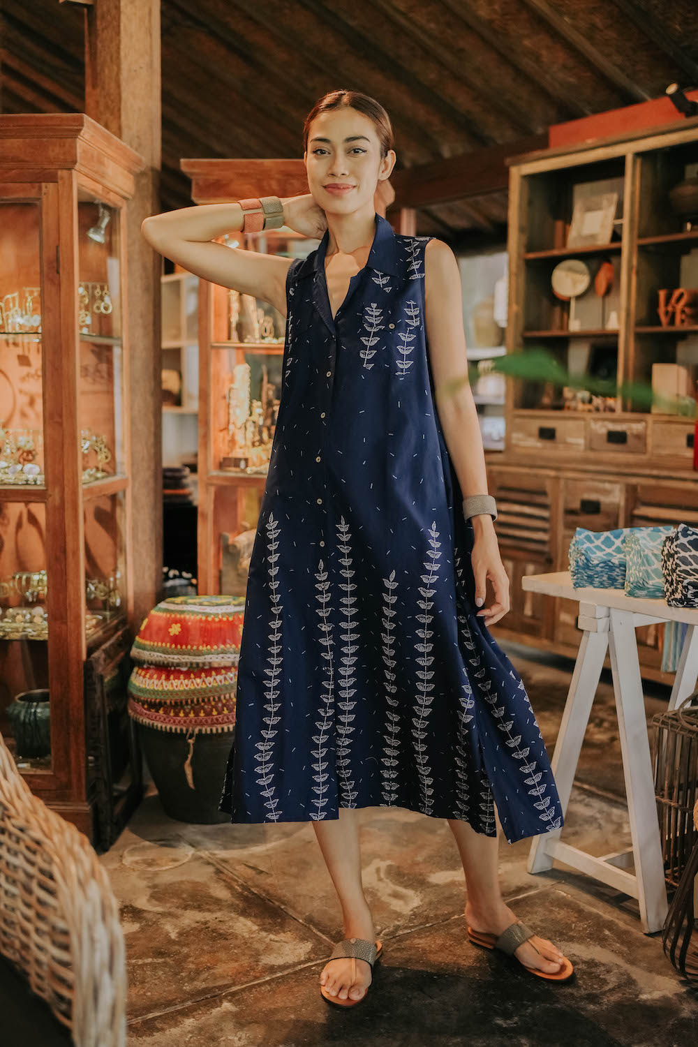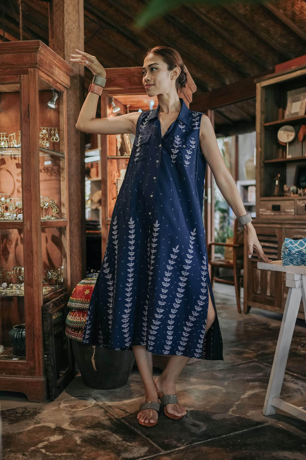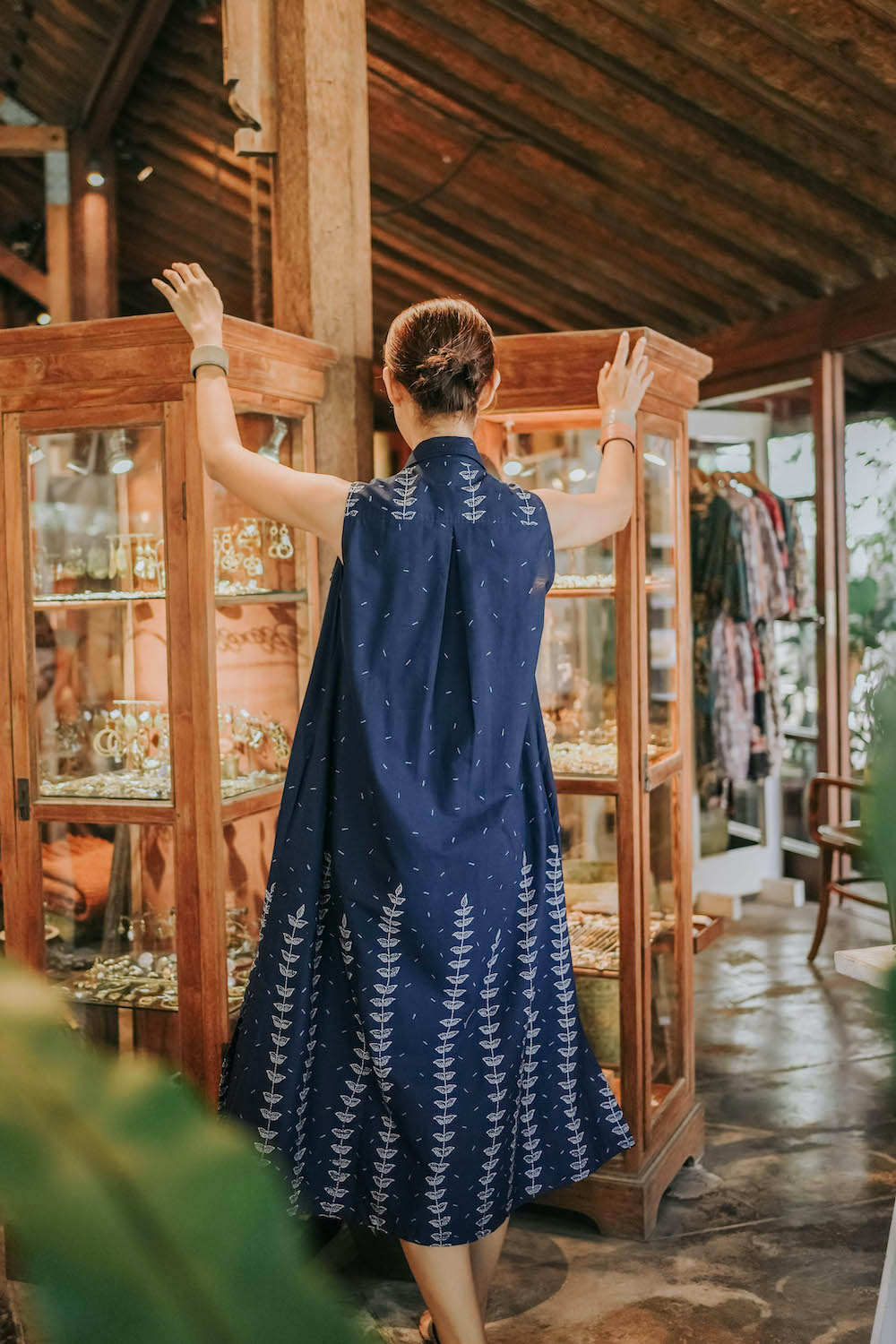 Indigo plantation inspired us to create our first capsule Batik tulis collection in hand dyed natural indigo. A delicate pattern remeshing of the Padma flowers is hand painted on NAMU Lux signature pieces embodying the meaning of this flower: beauty and grace.